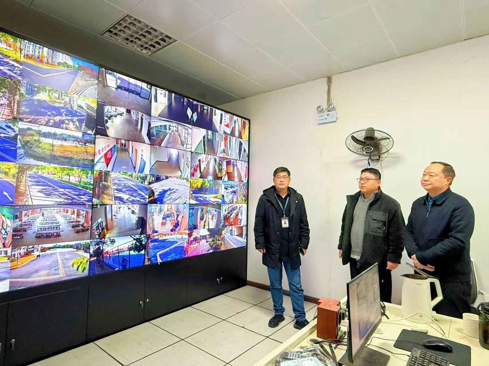 在我校总务、安保、消防等部门负责人的陪同下,检查组深入校园,开展了全面、细致的实地检查。检查组先后查看了学校门卫室、视频监控中心、教学楼、实训室、食堂以及学生宿舍等重点区域,对校园安防设施、消防器材、食品安全及实训室管理等关键环节进行了专业指导与隐患排查。