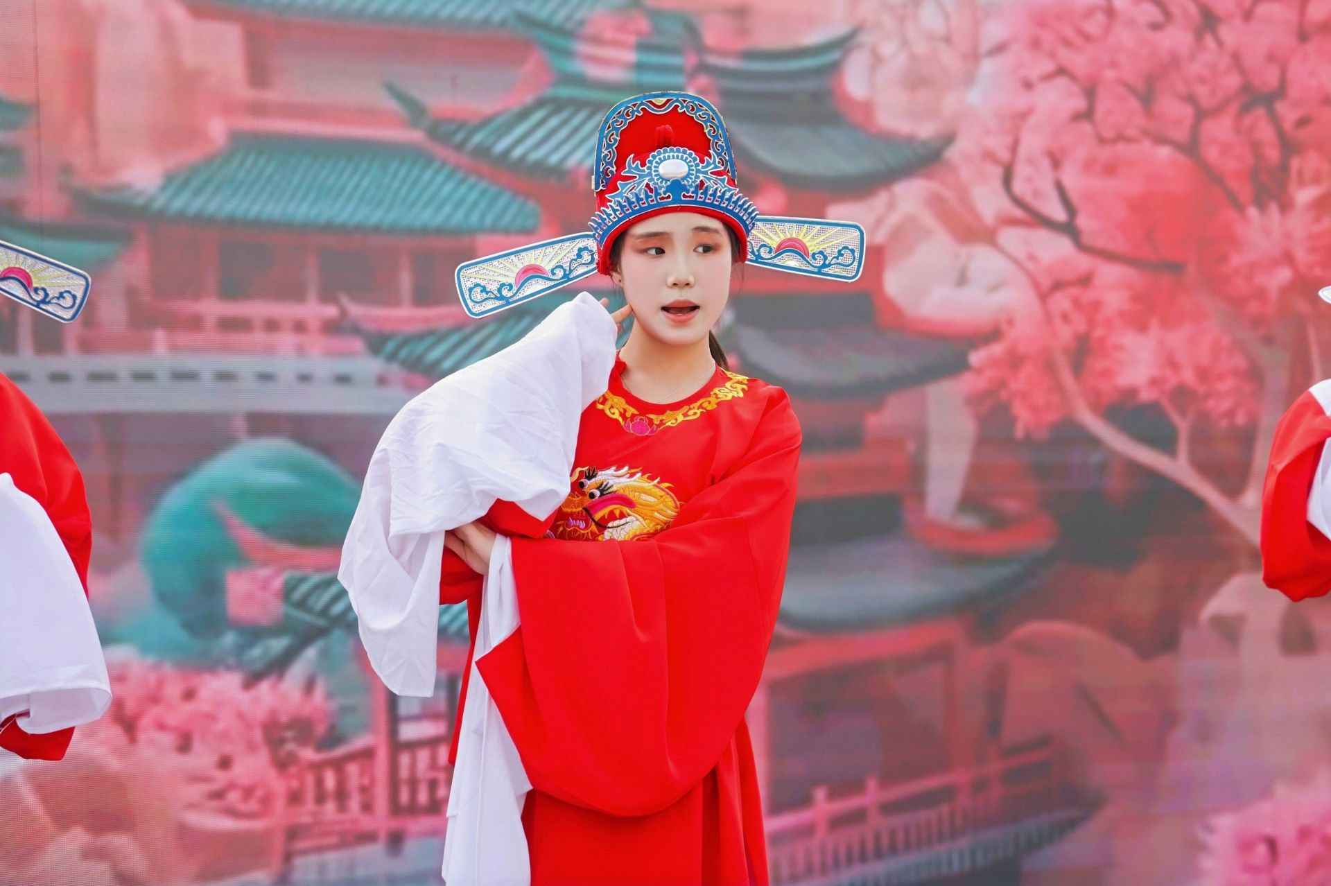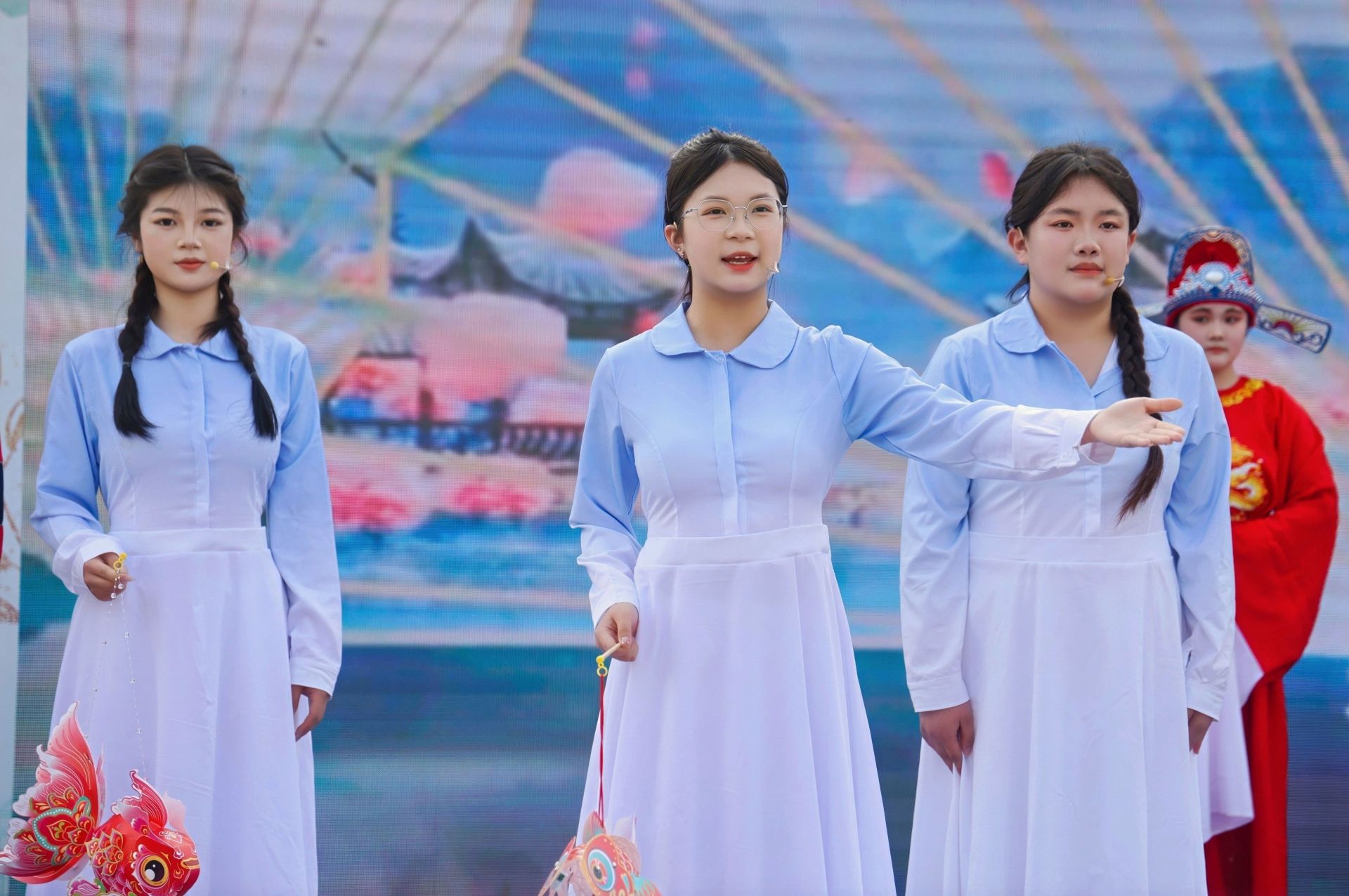 “为救李郎离家园,谁料皇榜中状元……”悠扬婉转的黄梅唱腔响起,我校学子身着戏服,神情专注,将传统戏曲的韵味与现代技能青年的朝气融为一体。情景剧《黄梅薪火 匠心少年》以黄梅戏经典片段为引,串联起技工学子在实训车间、课堂校园中传承技艺、磨砺匠心的真实故事。同学们精神饱满、声情并茂,在抑扬顿挫的诵读与身段表演中,既展现了黄梅戏的艺术魅力,又抒发了新时代技能青年对传统文化的热爱与坚守。精彩的表演赢得现场观众阵阵掌声与喝彩。