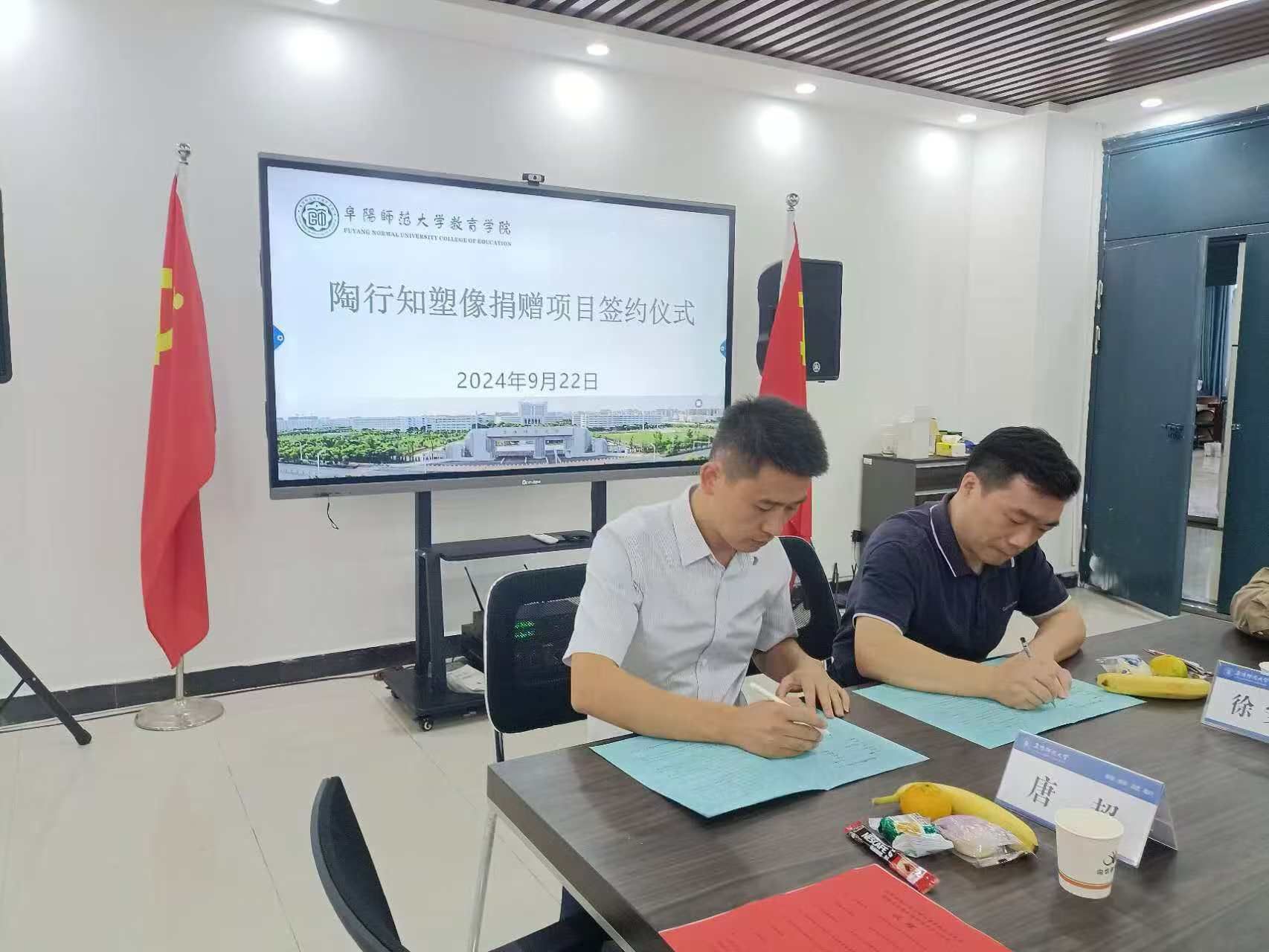 随后,举行了阜阳师范大学校友工作委员会教育学院分会成立仪式,公布了第一届组成成员名单。教育学院党委副书记、院长李欢和校友代表、2006届教育技术学专业毕业生、南京乐博人力资源有限公司总经理孔旭签订陶行知塑像捐赠项目协议。与会校友逐一进行自我介绍,回忆学生生活,讲述自身成长,为学校和教育学院的发展献言献策。