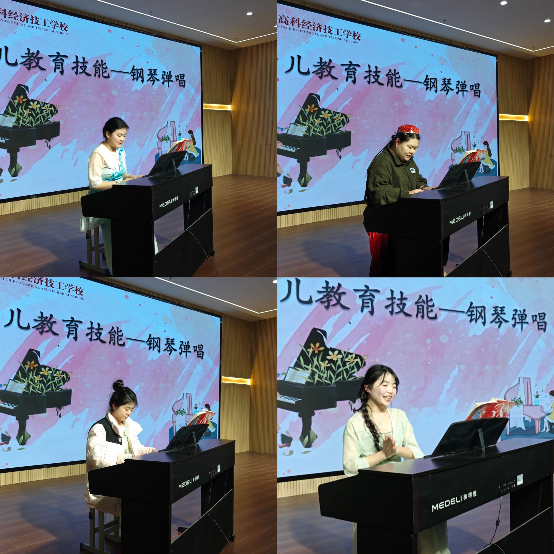 本次技能展示活动形式多样、内容丰富,涉及幼儿教育专业与酒店管理专业,涵盖舞蹈表演、钢琴弹唱、讲故事、导游词讲解、礼仪展示、知识问答等环节。