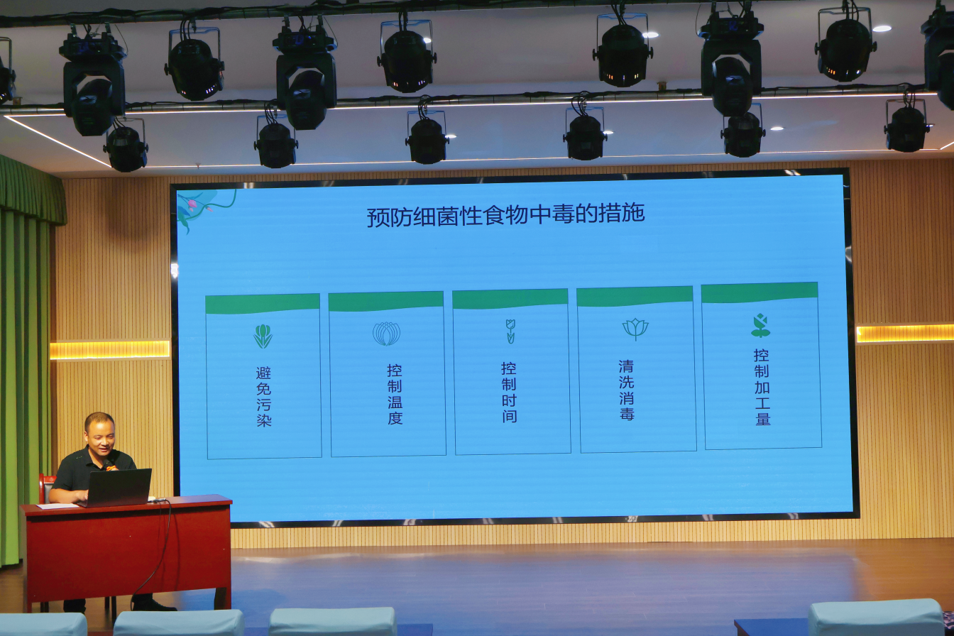 会议围绕校园食品安全概述展开,结合近年来国内外发生的多起食源性疾病案例,强调了食品安全管理的严峻性与重要性。同时明确了夏秋季节食源性疾病的防控要点,包括严把原料采购关、加强人员健康管理、落实晨检制度、规范食品加工流程、严格执行餐具消毒、强化环境卫生管理等具体措施。
